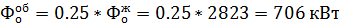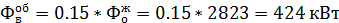 Тепловые мощности систем отопления и вентиляции общественных зданий в сельском населённом пункте допускается принять в размере соответственно 25% и 15 % от суммарной тепловой мощности систем отопления жилых зданий. Тепловые мощности систем отопления Фо, кВт, и вентиляции Фв, кВт, общественных, вспомогательных и производственных зданий: