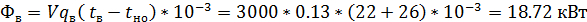 где qв - удельная тепловая характеристика (таб. 2,3 [1,3]), qв=0.13Вт/м3К