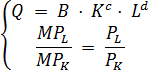 На регіональному ринку кондитерських виробів фірми, що діють за встановленою рівноважною ціною і представляють весь обсяг пропозиції галузі, випускають продукцію згідно технології, яка характеризується виробничою функцією класу Кобба-Дугласа: Q = B * Kc * Ld, де К – кількість використаного капіталу;L – кількість найманої праці. B,c,d – дійсні числа. Витрати на одиницю робочої сили визначаються за ставкою заробітної плати, Pl а витрати на одиницю капіталу – прокатною ціною капіталу Pk. Бюджет фірми складається з суми витрат (TC) на придбання факторів виробництва. У короткостроковому періоді постійною величиною є капітал K=const. Q=6K0,5 *L 1. Комбінація ресурсів, яка мінімізує витрати виробництва даної фірми, а також оптимальний для неї обсяг випуску за наявного бюджету TC.