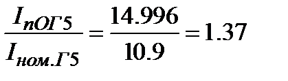Отношение начального значения периодической составляющей тока КЗ от генератора G5 при КЗ в точке К1 к номинальному току
