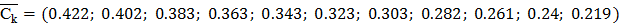 Для выбранного профиля типа «Clark-YH-8%» безразмерные координаты дуг приведены в табл. авиапрофиля. С помощью пересчета для размерных хорд bk и толщин ck получаем таблицы размерных координат профилей.