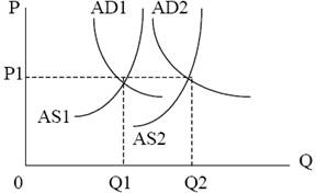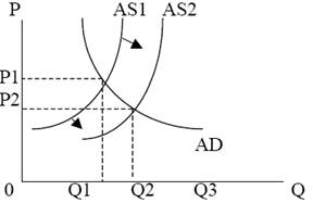Модель политики предложения появилась в середине 70-х гг. прошедшего столетия как реакция на кейнсианскую модель. К этому времени обнаружилось, что глубокие циклические кризисы могут сочетаться со структурными кризисами – такими, как энергетический, сырьевой, экологический. В отличие от кейнсианской, эта модель предполагает воздействие государства не на совокупный спрос, а на совокупное предложение. В отличие от кейнсианской, в этой модели стимулирование совокупного предложения не только не вызывает повышение уровня цен, но даже способно привести к его снижению. Такая модель Сторонники данной модели считают, что здесь наиболее действенным средством является конкуренция среди производителей. Вот почему они полагают необходимым со стороны государства принимать меры по обеспечению большего совершенства рынка, чтобы на нем был высокий уровень конкуренции. Среди методов государственного воздействия на совокупное предложение особо выделяются налоговые методы. В целях стимулирования роста производства предлагается идея уменьшения «налогового клина» между издержками и ценами товаров. Так, снижение подоходных налогов, в т. ч. на заработную плату, позволяет фирмам понижать зарплату при сохранении ее реального содержания. Это, в свою очередь, ведет к снижению издержек предприятий и расширению производства. На графике такая возможность показана путем сдвига кривой совокупного предложения с положения AS1 на положение AS2. Кроме того, сторонники политики предложения считают, что низкие подоходные налоги поощряют людей больше зарабатывать, что также ведет к росту производства. Снижение налогов на предприятия позволяет им больше средств использовать на расширение производства, обновление его фондов. Подобная налоговая политика в 80-е гг. была заложена в основу политики в США, которая получила название «рейганомики». Похожей была и политика «тэтчеризма» в Великобритании.Часть теоретиков политики предложения считает, что помимо снижения налоговых ставок и предоставления налоговых льгот на предложение необходимо воздействовать всем набором возможных методов, включая: - антимонопольное законодательство; - политику доходов, в том числе «замораживание» заработной платы, чтобы сдержать рост издержек предприятий; - проведение жесткой рестриктивной денежно-кредитной политики для борьбы с инфляцией; - использование госбюджетных средств для оказания помощи предприятиям в деле их технического переоснащения, в подготовке и переподготовке кадров и т.д.; - приватизацию государственных предприятий для пополнения госбюджета. Многие сторонники политики предложения под лозунгом «дерегулирования экономики» выступают за ограничение государственного вмешательства в экономику мерами денежно-кредитной политики. В этом они оказываются солидарными с представителями монетаризма, которые считают, что государству следует уделять основное внимание денежной массе, находящейся в экономике, через нее влияя на производство. Так, американский экономист М.Фридмен предложил уравнение dM = dP + dY, где dM – среднегодовой прирост денежной массы, dP – ожидаемый темп инфляции, dY – среднегодовые темпы роста ВНП. Из этого уравнения следует, что если государство добьется стабильного уровня цен, то, увеличивая денежную массу, оно обеспечит соответствующ