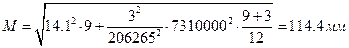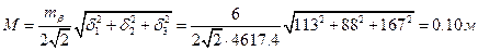 Копіюють хід на кальку, наносять на неї центр ваги ходу, вимірюють величини У нашому випадку Розраховуємо тепер середню квадратичну похибку М в кінцевій точці запроектованого полігонометричного ходу і зробимо висновок, чи достатня його точність.