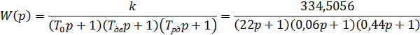 Для виконання синтезу коректуючого пристрою, що забезпечує задані показники якості запишемо передаточну функцію у вигляді: