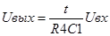 Підсилювач DА2 являє собою, інтегратор, неінвертуючий вхід якого підключений к дільнику. Дільник установлює зсув вихідного сигналу. Елементи інтегратора R4 і С1 забезпечують необхідні тимчасові співвідношення. За рахунок зміни R4 змінюється частота роботи схеми. Струм що протікає: через R4, буде постійним. Постійний струм заряду С1 визначає лінійність форми вихідного сигналу. Вихід підсилювача DА2 через резистор R2 подається назад на неінвертуючий вхід підсилювача DА1, що представляє собою тригер Шмидта, R2 встановлює коефіцієнт зворотного зв'язку контуру і задає амплітуду сигналу. Визначимо параметри необхідні для розрахунку: Tпер = 11мс; Sвых= 1,5 – 5,7 де, Тпер - час одного періоду в мілісекундах; Sвых – шпаруватість (відношення часу одного періоду до часу одного імпульсу). По цим даним визначимо необхідну амплітуду Uвых. Визначимо значення часу одного імпульсу для мінімальної шпаруватості і час для максимальної шпаруватості.