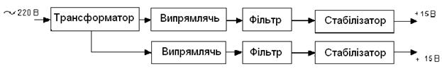 Рис.3.1. Структурна схема стабілізованого джерела постійної напруги.