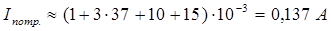 Визначимо струм споживаний пристроєм від стабілізатора. Запропонована схема містить 12 КМОП мікросхем сумарний струм споживання яких не перевищує 1 мА. Використовувані мікросхеми ДО490ИП1, з убудованими 7 – мі сегментними індикаторами споживають струм не більш 2 мА, без індикації. При роботі вбудованих індикаторів, струм споживаний на індикацію складає не більш 35 мА. Споживання струму на те щоб засвітилися світлодіоди, оптопари й індикації, складає 10 мА. Струм який споживається мікросхемою стабілізатором складає приблизно 15 мА. Просумуємо усі ці струми й одержимо зразковий струм споживання схемою.