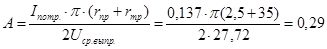 По розрахованим вище параметрах, з довідкової літератури вибираю випрямну діодну зборку типу КЦ412А, її технічні характеристики наступні. - Iпр.ср. – 1 А; - Iпр.и. – 15 А; - Uобр.и. – 50 В; - Uпр. – 2,5 В. Вибравши тип діодів знайдемо їхній прямий опір rпр= Uпр./ Iпр.ср.=2,5/1=2,5 Ом. Визначимо параметр А по формулі: