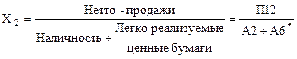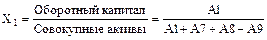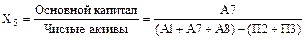 Правило разделения фирм на группы успешных и банкротов следующее: если Z < 2,675, фирму относят к группе банкротов; если Z > 2,675, фирму относят к группе успешных; при значении Z от 1,81 до 2,99 модель не работает, этот интервал - "область неведения". Принимая за основу составленный ранее агрегированный баланс, переменные для уравнения Z -оценки рассчитывают следующим образом: