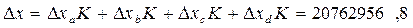 5. Використовуючи корегувальний коефіцієнт, розрахуємо повний вплив факторів на результативний показник. Припускаємо, що всі фактори впливають на результативний показник однаково, тобто при розрахунку не треба дотримуватись послідовності заміни факторів.