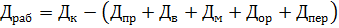 Где:: ДК – число календарных дней в году, дн; ДК = 365 дн.; ДПР, ДВ – число праздничных и выходных дней в году, дн.; ДПР = 12 дн., ДВ = 105 дн.; ДМ – число дней простоя машин по метеоусловиям, дн.; ДМ = 15…20 дн.; ДОР – число дней простоя машин по организационным причинам, дн.; ДОР = 3% * ДК [2]; ДПЕР – число дней затраченных на перебазирование машин с одного места работы на другое, дн. На текущий год эта величина может быть равна и нулю. Для автомобилей требуется пр