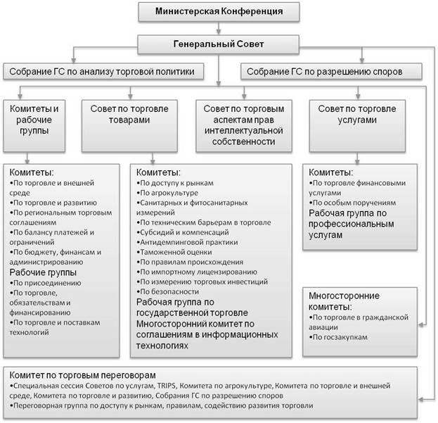 Рис. 1. Структура ВТО[8]. [1] Яковлева И.М. Общая характеристика ВТО // Вопросы экономики, 2012,стр. 241. [2] Яковлева И.М. Общая характеристика ВТО // Вопросы экономики, 2012, стр. 68.