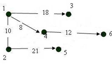 d(2)=min{d(2); d(1)+a(1,2)}=min{∞; 0+10}=10 d(2)=min{d(2); d(4)+a(4,2)}=min{10; 8+9}=10 d(3)=min{d(3); d(2)+a(2,3)}=min{18; 10+16}=18 d(5)=min{d(5); d(3)+a(3,5)}=min{31; 18+15}=31 d(5)=min{d(5); d(6)+a(6,5)}=min{31; 20+23}=31 Мы получили ориентированное дерево кратчайших путей начинающихся в вершине №1 для исходного графа.