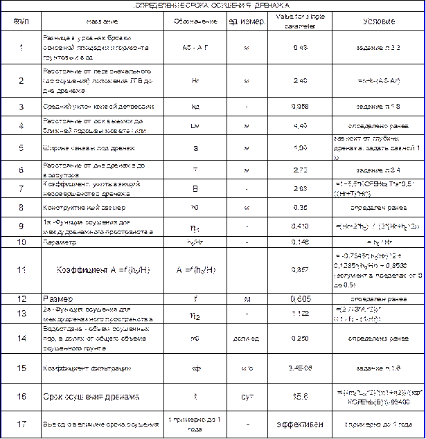 Техническая эффективность дренажа определяется коэффициентом водоотдачи m0. Порядок расчета следующий: · вычисляется коэффициент пористости: