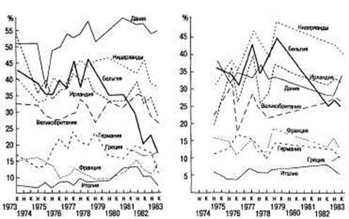 Источник: У/оМ Уа1иез 5(;ис!у Сгоир, 1994. Примечание: Для получения более надежных выборок по разным странам полученные первоначальные оценки уточнялись (данные, содержащие явные ошибки, были отброшены и при анализе не учитывались). Агентство исследований рынков и общественного мнения (Магке(Оржоп апй КезеагсН 1п(егпа1юпа1 — МОКГ) провело обследование в 54 странах. Счастье оценивалось по ответам респондентов на один заданный вопрос (\Уогсе51ег, 1998). В итоге получился ранжированный список стран, и он оказался схож с указанным выше (табл. 12.1). Страны, где уровень счастья самый высокий, — Исландия, Швеция, Нидерланды, Дания, Австралия, Ирландия и Швейцария. Самый низкий уровень счастья был выявлен в Болгарии и республиках бывшего СССР. Великобритания в этом исследовании на 9-м месте среди 54 стран (по итогам Всемирного обследования ценностей, она занимает 14-е место из 41 по удовлетворенности жизнью и 11-е — по положительным эмоциям). Ежегодные обзоры проводились «Евробарометром» в странах Европы. Результаты, которые были получены за период с 1974 по 1983 г., характеризующие число совершенно довольных жизнью и счастливых людей, показаны на рис. 12.1. Можно заметить, что жители Голландии и Дании считали себя гораздо более счастливыми и удовлетворенными жизнью, чем население Италии, Франции и Германии. За указанный период существенное падение удовлетворенности наблюдалось в Бельгии: там отмечался экономический спад. Великобритания находится чуть ниже среднего уровня: 25% ее жителей считали себя очень счастливыми, 35% были весьма довольны жизнью. Рассмотренные нами данные отличаются от аналогичных результатов других исследований: они показывают существенный разрыв между странами. Однако некоторые выводы интернациональных исследований удивляют. Почему исландцы столь счастливы? Почему скандинавские страны всегда на первых местах по уровню счастья и удовлетворенности, а Италия, Франция и Германия остаются далеко позади? Обследование «Евробарометра» показало: 45% голландцев считают себя совершенно счастливыми, однако среди итальянцев таковых лишь 5%; 55% датчан очень довольны своей жизнью в целом, а среди итальянцев и французов таковых лишь 10 и 15% соответственно. Поверить в эти цифры трудно; они дают веский повод сомневаться в их валидности. В других областях психологии не принято измерять какой-либо показатель, используя всего один, заданный напрямую вопрос. Обычно используются непрямые вопросы, чтобы респонденты не знали, какой ответ является «правильным»; к тому же привлекается несколько вопросов, которые формируют единый фактор, Интернациональные исследования счастья 211 и ответы тогда касаются разных проявлений общего оцениваемого свойства. Например, мы не стали бы исследовать расовые предрассудки, заручившись ответами на единственный вопрос: «Вы ненавидите чернокожих?» а б