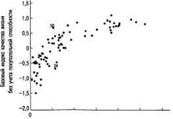 Доход и благосостояние 213 Причина такой разницы в воздействии дохода на удовлетворенность жизнью заключается в том, что, когда в расчет принимается лишь одна страна, преобладающую роль играют индивидуальные различия (например, особенности личности). Вместе с тем различия между странами обусловлены, в частности, неодинаковой обеспеченностью общественными благами — такими, как здравоохранение, образование и организация досуга. Динер и соавторы (В1епеге1 а1., 1995) проанализировали данные по 41 стране, которые были охвачены Всемирным исследованием ценностей. Оказалось, что средняя покупательная способность коррелирует с удовлетворенностью жизнью на уровне 0,69, с положительными и отрицательными эмоциями — 0,29 и -0,41 соответственно. В богатых странах (Швейцарии, Канаде и США) степень удовлетворенности жизнью очень высока, а в бедных (Болгарии, России, Китае и др.) — низкая. В некоторых работах установлено, что при доходе выше среднего он не влияет на меру удовлетворенности, хотя другие исследователи не обнаруживают подобного выравнивания. Как мы уже говорили, доход позволяет предсказывать меру удовлетворенности жизнью, что объясняется возможностями реализовать базовые потребности (в пище, крове, одежде и т. п.). Вместе с тем эта мера увеличивается с ростом доходов, даже если отмеченные потребности уже удовлетворены. Динер (О1епег, 1995) объединил 14 объективных индикаторов, характеризующих разные аспекты благополучия. Как видно из рис. 12.3, если растет доход, то увеличивается и значение обобщающего показателя, однако такой эффект наблюдается, лишь пока среднедушевой доход не превысит $3000 (в американских ценах 1981 г.), после чего показатель благополучия выравнивается. В этот обобщенный индекс включено намного больше составляющих, чем удовлетворение лишь материальных потребностей; следовательно, деньги играют и иную роль, но когда уровень получаемого дохода относительно невысок. Эти результаты аналогичны тем выводам, что касаются взаимосвязи, обнаруженной между величиной индивидуального дохода и ощущением счастья в рамках отдельных стран.