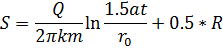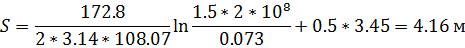 де: Q - експлуатаційний дебіт, 86.4м3 / добу km - коефіцієнт водопровідності, 108.08 м2 / діб а - коефіцієнт рівнепроводимості, 2 * 104 м2 / діб t - розрахунковий термін експлуатації, 2 * 104 діб ro - радіус свердловини, 0.073 м R - величина фільтраційного опору, що враховує недосконалість свердловини і визначається залежно від ставлення потужності горизонту: m = 25.5 м до радіусу свердловини ro = 0.073 м і довжини фільтра l = 17.7 м до потужності горизонту, тобто: