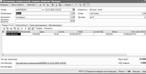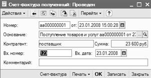 После заполнения документа сформируем счет-фактуру полученную. (щелкнув по кнопке Счет- фактура»).
