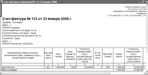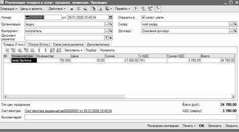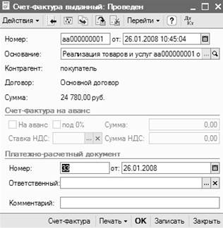 Напечатаем счет-фактуру.