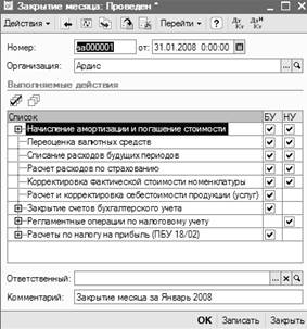 Попробуем сделать баланс, а почему бы нет. Баланс можно сделать в любое время а потом после завершения всей деятельности за период сформируем окончательный баланс. Перед балансом выполним регламентную процедуру «Закрытие месяца».