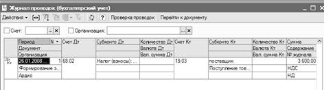 По кнопке «Перейти» посмотрим проводки от записи книги покупок.