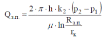 Обозначим давление на радиусе проникновения Rзп через р2. на радиусе кольматации гк через р1, пластовое через рпл. а на входе в скважину через рс. Тогда, если приток идет от контура питания RK к скважине с воображаемым радиусом гС9 согласно формуле Дюпюи дебит будет равен: