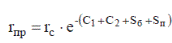 С1, С2 - безразмерные коэффициенты, учитывающие дополнительные фильтрационные из-за несовершенства скважины соответственно по степени и по характеру вскрытия пласта. коэффициент Sn (скин-эффект перфорации), учитывающий дополнительные фильтрационные сопротивления в прискважинной зоне вокруг перфорационных каналов. Для расчетов притока жидкости или времени для системы взаимодействующих несовершенных скважин большое значение имеет понятие приведенного радиуса rпр. Это радиус такой фиктивной скважины, дебит которой при остальных равных условиях равен дебиту реальной гадродинамически несовершенной скважины