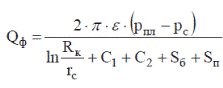 Формула для расчета дебита реальной скважины, пробуренной на нефтяной объект и имеющей все виды гидродинамического несовершенства, принимает вид: