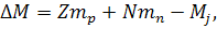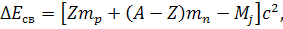 называется энергией связи ядра. Дефект масс характеризует разность, между массами невзаимодействующих нуклонов и массой образовавшегося из них ядра:
