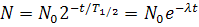 t - время, прошедшее с начала распада, с;