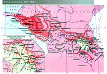 Внешняя политика. После разгрома наполеоновской армии Россия стала играть ведущую роль в европейских делах. До 50-х гг. XIX в. Россия поддерживала мирные отношения со всеми европейскими державами. На юго-восточной границе Российской империи сложилась иная ситуация: отношения с Османской империей постоянно ухудшались. Одной из причин осложнения отношений с Турцией стало усиление влияния России на Балканах среди христианских народов Османской империи. Османская империя к этому времени стала переживать глубокий всеобъемлющий кризис. Во второй четверти XIX в. в европейской политике обозначился восточный вопрос. Вследствие этого освободительная борьба балканских христианских народов за освобождение от турецкого владычества усилилась. В этой борьбе балканские народы стремились опереться на Россию. Это вызывало раздражение Турции. Еще одной причиной враждебных отношений России с Турцией были события на Кавказе. Кавказ - магическое и самое беспокойное место на Земле. Это гигантская крепость, разделяющая Европу и Азию, омывается двумя морями - Черным и Каспийским; в горах Кавказа берут начало две крупнейшие реки - Терек и Кубань. С глубокой древности Кавказ пережил множество войн, миграций, стихийных бедствий. Кавказские горы издавна были населены племенами горцев - чеченцев, ингушей, лезгинов, осетин, черкесов и др. Чтобы выжить, горцы все выше и выше карабкались в горы, враждовали между собой и жили за счет войн и набегов. Горские народы были многочисленны, относились к разным языковым, этническим группам, находились на разной стадии развития, исповедывали разные религии, враждовали между собой и никому не подчинялись. Но время создало здесь уникальную, единую цивилизацию горцев. Для многих, мечтавших покорить Кавказ, он на деле оказывался "острым клинком из многослойной стали". Кавказ оставался непокоренным и никому не принадлежал. До XVI в. Кавказ был сферой влияния Турции и Ирана. В XVI в. во времена Ивана Грозного ситуация меняется. Иван IV Грозный женился на черкесской княжне Марии и обратил свои взоры на Кавказ. На реке Терек по его приказанию была заложена первая русская крепость, где стали нести службу 500 стрельцов. Сюда постоянно прибывали казаки, беглые крестьяне, бойко шла приграничная торговля. Так русские начали осваивать Кавказ. После русско-турецких войн Екатерины II к России была присоединена Кубань. После этого Кавказ стал ареной упорной, ожесточенной борьбы трех могущественных государств - Османской империи, Персии и России. Во времена Екатерины II естественной границей России на Кавказе стали реки Кубань и Терек. После ликвидации гетманства на Украине в 1764 г. несколько тысяч запорожских казаков переселились на Кубань. Возникли города-крепости - Ставрополь (1777 г.), Екатеринодар (1793 г.) и др. По рекам Кубань и Терек была сооружена сплошная линия укреплений. Она получила название Кавказской линии. Кавказская линия стала южной границей России. Кавказские горцы к этому времени уже приняли ислам и признавали над собой власть турецкого султана как главы всего мусульманского мира. Поэтому, чтобы остановить продвижение России на Кавказ, турецкий султан оказывал всяческую поддержку горским народам. К 1804 г. Грузия вошла в состав России. Для сообщения с Грузией русскими через Кавказский хребет была проложена Военно-Грузинска