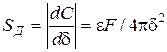 где Tаким образом, при изменении расстояния δ между пластинами будет изменяться емкость датчика. Дифференциальная чувствительность S Д датчика в этом случае определится по формуле: