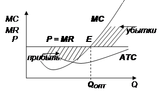 прибыль максимизируется при равенстве предельной выручки и предельных издержек. Проиллюстрируем это графически на рис. 23.