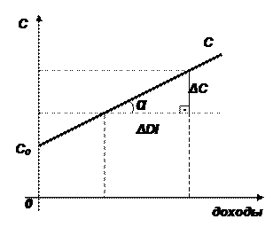 Функция совокупных затрат имеет вид: АE = C + I + G + (X – М). Для графической интерпретации функции агрегированных расходов разберем ее составляющие: функцию потребления, инвестиционную функцию, функцию государственных затрат и чистого экспорта. Функция потребления C = C0 + mpc × ВВП, где C0 – автономное потребление (объем потребления при нулевом доходе или жизнь в долг); mpc – предельная склонность к потреблению.