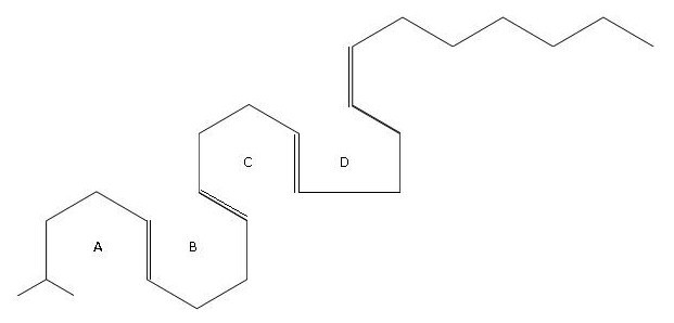 Сквален – предшественник стероидов, которые имеют тетрациклический скелет. К стероидам относиться холестерин. Холестерин – одноатомный спирт, поэтому его часто называют холестеролом. Холестерин содержит восемь ассиметричных атомов углерода и, следовательно, может иметь 256 стереоизомеров, однако в природе встречается только один. Отложение холестерина на стенках кровеносных сосудов приводит к атеросклерозу. Терпены и стероиды, несмотря на разницу в строении, имеют генетически тесную связь. В печени из холестерина синтезируется необходимая для пищеварения холевая кислота (желчная кислота). Желчные кислоты - типичные поверхностноактивные вещества; они необходимы для усвоения липидов. Из холестерина вырабатываются стероиды: гормоны – тестостерон, кортизон (используется при аллергии).