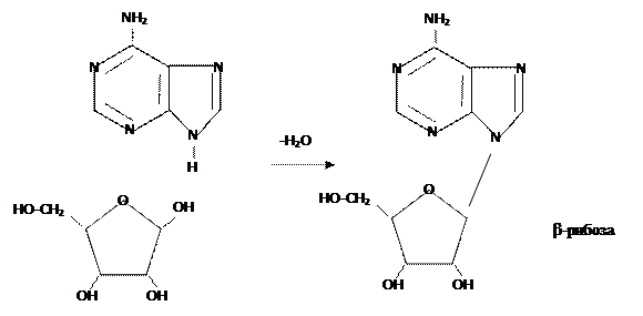 Как было сказано, структурными единицами нуклеиновых кислот, их мономерами являются нуклеотиды, состоящие из одного из перечисленных выше гетероциклических азотистых оснований, углевода и фосфорной кислоты. Углевод занимает среднее положение в этой триаде. Часть мононуклеотидов, содержащих только азотистое основание и углевод называется нуклеозидом. При этом углевод и азотистое основание связано N-гликозидной связью.