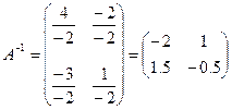 Алгоритм нахождения обратной матрицы Из формулы (5.20), чтобы найти обратную матрицу 1) найти детерминант матрицы А; если он равен нулю, то обратной нет. Если detA 2) матрицу 3) транспонируем эту матрицу 4) всякий элемент матрицы Рассмотрим пример: Пусть 1) detA = –2 2) дополнения: 3) 4)