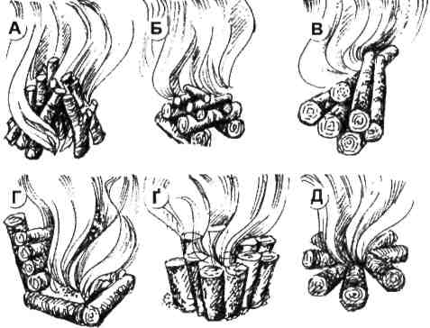 Санітар повинен обстежити район навколо табору і вибрати на відстані 70-100 м від його центру затишні місця для туалетів-в густих заростях, а ще краще в неглибоких, густо зарослих заглибинах сухих ярів. Кожен турист індивідуально організовує для себе туалет, використовуючи для цього саперну лопатку. Околиці табору повинні залишатися чистими. Крім того, санітар повинен знайти природне поглиблення або викопати у віддаленні від багаття та палаток яму - куди будуть скидатись відходи - залишки їжі, консервні банки, інше сміття. На водотоці, яким буде користуватись група, відповідальний черговий по біваку повинен намітити три місця: найвище по течії - для забору води на кухню, нижче - для вмивання, миття посуду та найнижче для прання спорядження. Місце купання (при наявності річки або озера) повинно бути вибрано та ретельно перевірено самим керівником. Зупинятись на нічний привал треба задовго до приходу темряви, оскільки об'єм робіт по розбивці та обладнанню табору завжди великий. Для швидкого виконання їх потрібна чітка організація. Першочерговими будуть заготівля дров та розведення багаття, а вже потім, коли дров збереться достатньо та їх вистачить не тільки на вечір, але і на приготування сніданку, починається установка палаток. Якщо ж небо погрожує дощем або він вже починається, треба швидко поставити палатки, сховати в них рюкзаки. Відповідальний черговий по біваку визначає черговість робіт, розподіляє наряди, вказує, де будуть багаття та місця для палаток. Бригада чергових по кухні в цей час розкладає своє господарство, обладнує багаття, готує розпалювання, приносить воду, відкриває консерви. Розведення багаття. Якщо група взяла з собою трос, то його натягують між двома деревами, віддаленими одне від одного на 7-10 м, та посередині розкладають багаття. Якщо ж у групи жорсткий станок для підвішування відер, відповідальний за багаття забиває в землю металеві трубчаті стійки, у верхні отвори трубок вставляє рогульки та на них кладе металеву перекладину. "Шалаш". Багаття типу "шалаша" зручне там, де туристи збираються варити їжу у невеликій кількості посуду та разом з цим хочуть освітлити табірний майданчик. Переваги цього конусоподібного багаття у тому, що на нього в якості палива йдуть невеликі, не товсті дрова. Даючи високе яскраве полум'я, багаття разом з тим має досить вузьку зону нагріву та утворює мало вугілля, постійно потребуючи підтримки сухим хмизом.