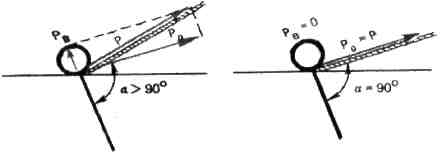 Тепер кожен бере по альпенштоку (це дві високі підпорки) у палатку. Вони складаються, як правило, із двох чи трьох частин. На схемі вони позначені вертикальними пунктирами та літерами А, ставлять їх спереду та позаду палатки. Зверху у кутках для їх фіксації є два отвори, а на дні палатки - відповідні брезентові квадрати. Щоб поставити задній альпеншток за правилами, одному треба залізти у палатку. Тому, щоб не робити цієї операції, часто ставлять задній альпеншток просто зовні палатки, що в принципі допустимо. За передню і задню розтяжки натягується верх палатки, по лінії симетрії палатки надійно забиваються два основні кілочки №5 та №6. Після цих дій альпенштоки повинні вже стояти самі, без підтримки. Залишилось попарно натягти та закріпити бокові розтяжки: спочатку дві передні, потім дві задні (кріпити середини як дна, так і боків палаток зовсім не обов'язково). Бокові розтяжки треба натягувати по діагоналі, як логічне продовження бокового схилу палатки (дивись схему). Палатка поставлена правильно, якщо: а) бокові схили намету провисають рівно, без складок; Усі шпильки та кілки встромляються в землю не вертикально, а з невеликим нахилом в протилежний від відтяжки бік. Довжину відтяжок вибирають такою, щоб кут між ними та землею був не більшим 45°, інакше кілочки будуть погано триматися в ґрунті (рис. 5.11). При куті 30° для висмикування кілочка знадобиться вдвічі більше сили, ніж при куті в 45°, - палатка встоїть в непогоду. Відтяжка повинна бути перпендикулярна вісі кілочка, в іншому випадку з'являється висмикуюча сила, і на пухкому грунті при вітрі кілок не встоїть і вилетить.