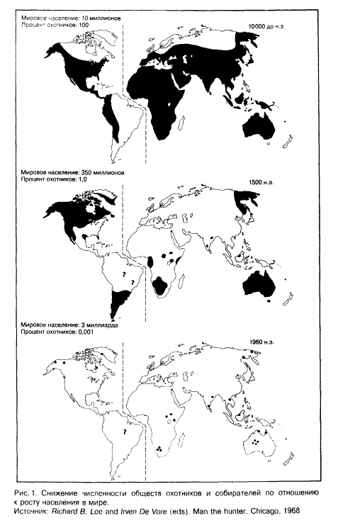 Охотники и собиратели не являются просто примитивными народами, чей образ жизни не представляет для нас никакого интереса. Изучение их культуры позволяет нам понять, что некоторые из наших собственных институтов чрезвычайно далеки от того, чтобы быть “естественными” явлениями человеческой жизни. Разумеется, не следует идеализировать обстоятельства, в которых жили охотники и собиратели, но, (57стр) тем не менее, отсутствие войн, существенного неравенства во власти и материальном благополучии и акцент на сотрудничество, а не на соревнование — все это властно напоминает нам, что мир, созданный современной индустриальной цивилизацией, не является безусловно “прогрессивным”. Скотоводческие и земледельческие общества Около двадцати тысяч лет назад некоторые группы охотников и собирателей в поисках средств к существованию начали заниматься разведением домашних животных и обработкой постоянных участков земли. Скотоводческие общества занимаются, как правило, разведением домашнего скота, а основное занятие земледельческих обществ — выращивание сельскохозяйственных культур. Многие общества ведут смешанное хозяйство — скотоводческое и земледельческое. Скотоводческие общества В зависимости от среды обитания, скотоводы занимаются разведением различных животных: коров, овец, коз, верблюдов или лошадей. В современном мире продолжает существовать множество скотоводческих общин, в основном в Африке, на Ближнем Востоке и в Центральной Азии. Обычно такие общества расположены там, где есть богатые пастбища, а также в пустынях или в горах. Эти районы непригодны для продуктивного земледелия, но в них можно разводить разные виды скота. Скотоводческие общества обычно мигрируют между различными районами в соответствии с сезонными изменениями. Используя животных в качестве транспорта, они преодолевают гораздо большие расстояния, чем племена охотников и собирателей. Поскольку скотоводы постоянно кочуют, они не накапливают значительной материальной собственности, хотя их образ жизни в этом смысле более сложный, чем у охотников и собирателей. Домашние животные обеспечивают регулярное снабжение пищей, поэтому скотоводческие общества обычно гораздо крупнее общин охотников и собирателей. В некоторых из них насчитывается более четверти миллиона человек. Перемещаясь по обширным пространствам, скотоводы регулярно вступают в контакт с другими группами. Часто они занимаются торговлей — а также войной. Многие скотоводческие общества были мирными, разводили скот и отправляли ритуалы и церемонии своей общины. Другие были чрезвычайно воинственными и добывали средства к существованию набегами и грабежами в той же мере, что и занятием скотоводством. У скотоводов обнаруживается большее неравенство в распределении власти и собственности, чем в общинах охотников и собирателей. В частности, вожди, предводители племен, военачальники нередко обладают значительной личной властью. Классическое описание скотоводческого общества дал Эванс-Причард, изучавший Ньюэ — племя из Южного Судана, Африка[29]. Народность эта жила в основном за счет занятия скотоводством, но, кроме того, Ньюэ выращивали некоторые сельскохозяйственные культуры. Селились они в деревнях, расположенных на расстоянии 8-30 км друг от друга. В 1930-х годах, когда Эванс-Причард