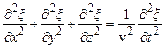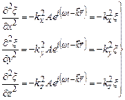 Хвильове рівняння – це диференціальне рівняння, розв’язком якого є рівняння хвилі. Для встановлення хвильового рівняння співставимо другі частинні похідні по координатах і часу від рівняння хвилі (5.50)
