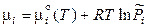 Химический потенциал i -го компонента в смеси идеальных газов определяется выражением