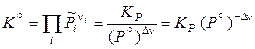 представляет собой изменение числа молей газообразных веществ в ходе реакции. Численное значение KP при постоянной температуре в общем случае зависит от выбора величины стандартного давления. Для смеси идеальных газов по закону Дальтона