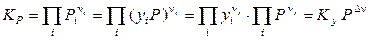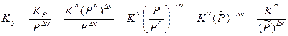 Константа равновесия Кy зависит от температуры и в общем случае от общего давления в системе. Связь Кy и стандартной константы равновесия определяется следующим выражением: