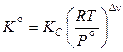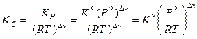 где величина КС – константа равновесия, выраженная через молярные концентрации участников реакции. Эта константа для реакций с идеальными газами является функцией только температуры. Связь КС и термодинамической константы равновесия определяется соотношением