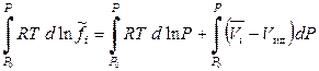 Следовательно, для парциальной летучести компонента fi в смеси реальных газов можно записать: