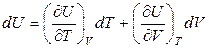 Если независимыми переменными выбрать Т и V, то полный дифференциал U запишется