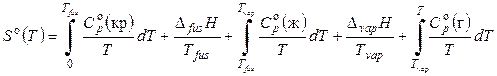 где индексы кр, ж, г относятся соответственно к кристаллическому, жидкому и газообразному состояниям вещества. Аналогично могут быть вычислены значения стандартных энтропий веществ