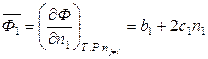 Уравнения (6.61, 6.62, 6.64, 6.65) позволяют определить парциальные молярные величины компонентов на основе известной зависимости интегрального свойства от состава. Например,