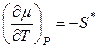 где S* и V* – энтропия и объем 1 моля чистого вещества (молярные энтропия и объем). Для 1 моля идеального газа V* = RT / P, поэтому